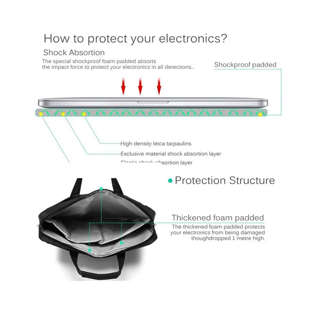 In addition to the outer fabric material, the CoolBell laptop bag has an inner lining made entirely of waterproof fabric that absolutely prevents water from seeping inside and affecting the electronic devices in the bag.