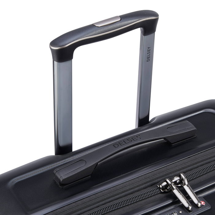 Shop Delsey Shadow 5.0 Hardside Luggage. Premium lightweight polycarbonate suitcase with expandable main compartment, smooth 360° double-spinner wheels, multi-position telescopic handle, smart interior organization & TSA-approved lock. Sleek, modern design for business, leisure, and international travel. Durable, stylish & perfect for confident journeys.