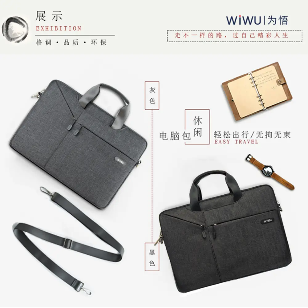 WiWU City Commuter Handbag – Slim, protective laptop bag designed for MacBook & PC, with water-resistant fabric, multiple compartments, and versatile carry options.